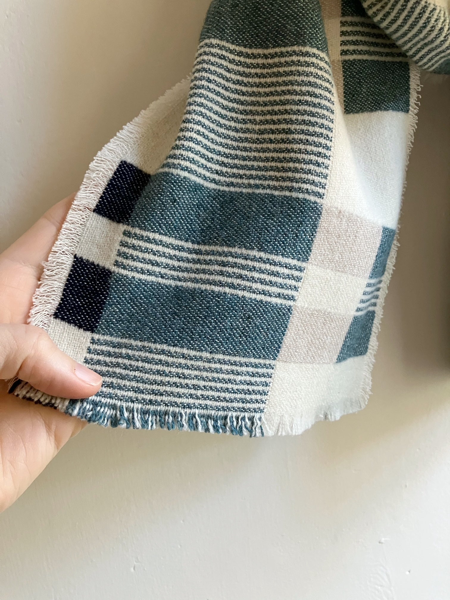 Theses scarves are cut across the weft which gives them a delicate fringe along the length of both sides of the scarves, a lovely detail.