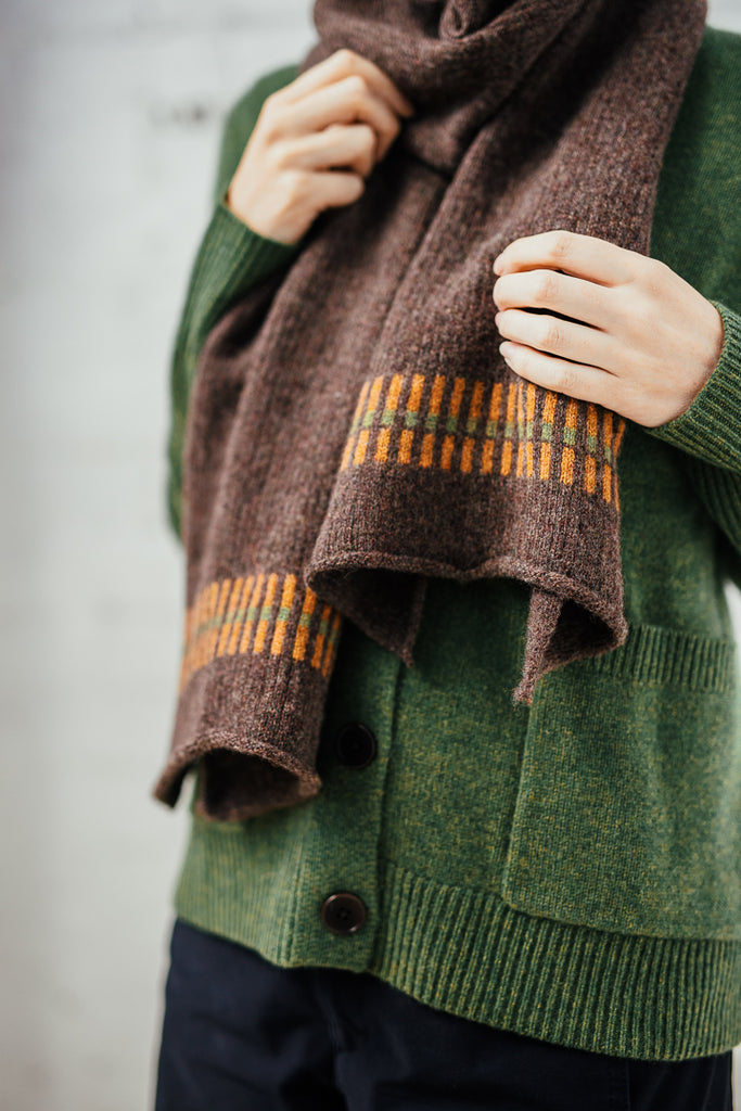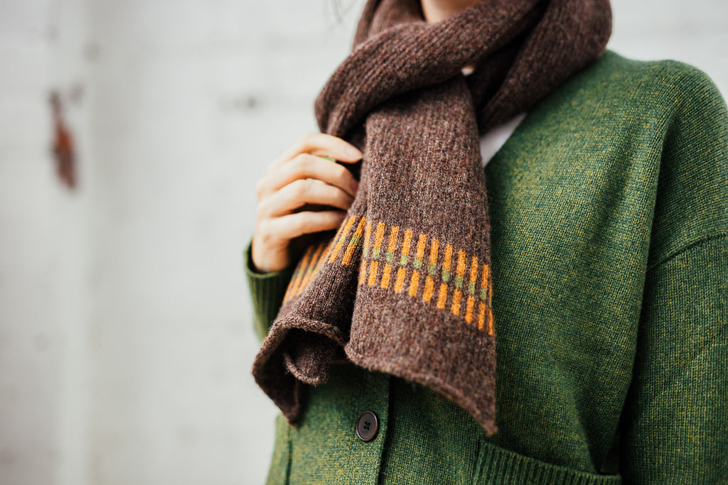 Our Beam scarves are inspired by the structural beams on display in our studio space and are knitted in a range of contemporary colour ways.