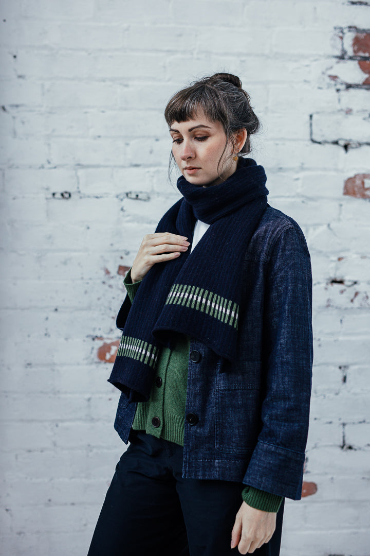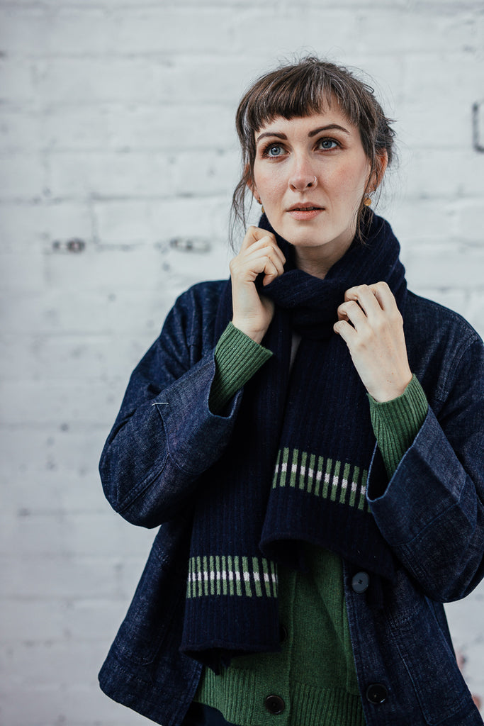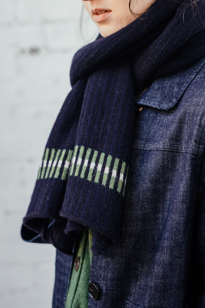 Our Beam scarves are inspired by the structural beams on display in our studio space and are knitted in a range of contemporary colour ways.