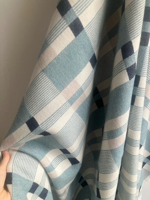 Our cloth is designed in studio and woven at our Lancashire weavers before being washed at our local Huddersfield finishers. The roll of cloth then returns to the studio to be cut into blankets hand edged and labelled.