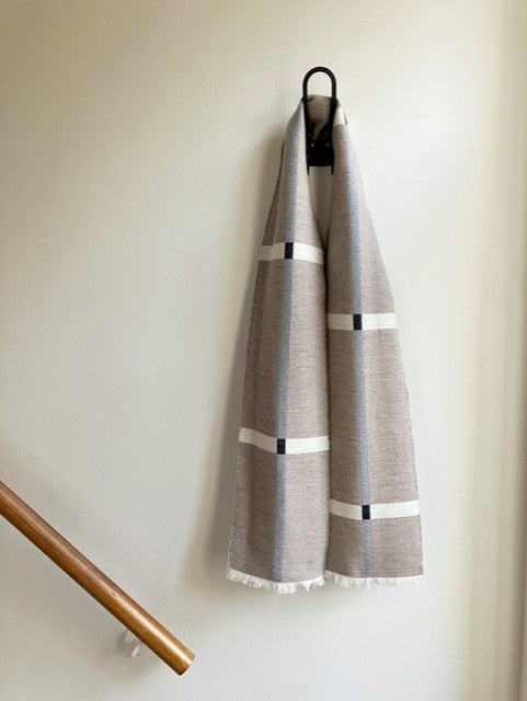 Woven Colour Study scarf in Mushroom/Smoke/Navy
